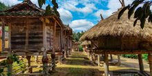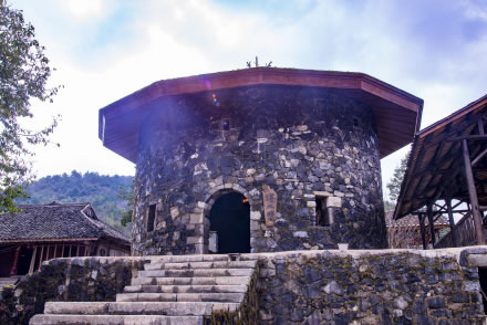 禾倉是瑤山古寨標(biāo)志性的歷史古建筑,有的禾倉已存在上百年。禾倉建筑獨(dú)特,用四柱支撐,上層墊以木板,周圍用竹籬笆圍成圓形,頂上蓋以毛糙,這些禾倉里面用來存放糧食和貴重物品,具有防潮、防盜、防鼠的功能。禾倉下面通常會放置一些生產(chǎn)工具,或者供寨上的人們聚會聊天。