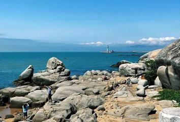 大小洞天風景區(qū)以其秀麗的海景、山景和石景號稱瓊崖第一山水名勝。風景區(qū)內仍有“小洞天”、“釣臺”、“海山奇觀”、“仙人足”、“試劍峰”等歷代詩文摩崖石刻。山、海、林泉是構成一個旅游名勝必不可少的條件。這里,崖州灣弧弦百里,碧波萬傾;鰲山云深林翠,巖奇洞幽;海岸遍布神工鬼斧,肖形狀物之大小磊群;山海之間宛如一幅古樸雄壯的長卷畫圖。