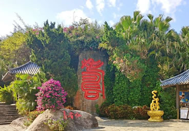 長壽谷,也叫鰲山壽谷,位于南山東麓,其地貌依攀山勢,呈谷狀縱伸。谷線全長2300米,堪稱熱帶雨林奇觀。其間鳥鳴不斷、溪水長流、林木郁郁蔥蔥、巖石突兀奇特。設計者巧用天然形勝,從不同角度,以“流動”和“靜止”的狀態(tài)揭示著傳統(tǒng)“壽”文化的內(nèi)核,融匯福壽文化于熱帶雨林奇觀。其主要景觀包括:“無量壽佛”、“流水尊者”;著名書法家啟功先生所書之“壽比南山”巨大石刻、“百歲階”、“賀壽堂”等,無一不體現(xiàn)中國傳統(tǒng)文化中增福添壽的美好祈福。是老年游客必游覽駐足的景點。