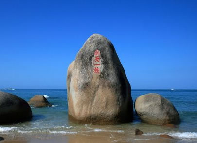 “天涯石”位于景區(qū)西北方,是景區(qū)的標(biāo)志和象征。高10.8米,周長約66米,獨(dú)占海灣一角,有億萬年的歷史。