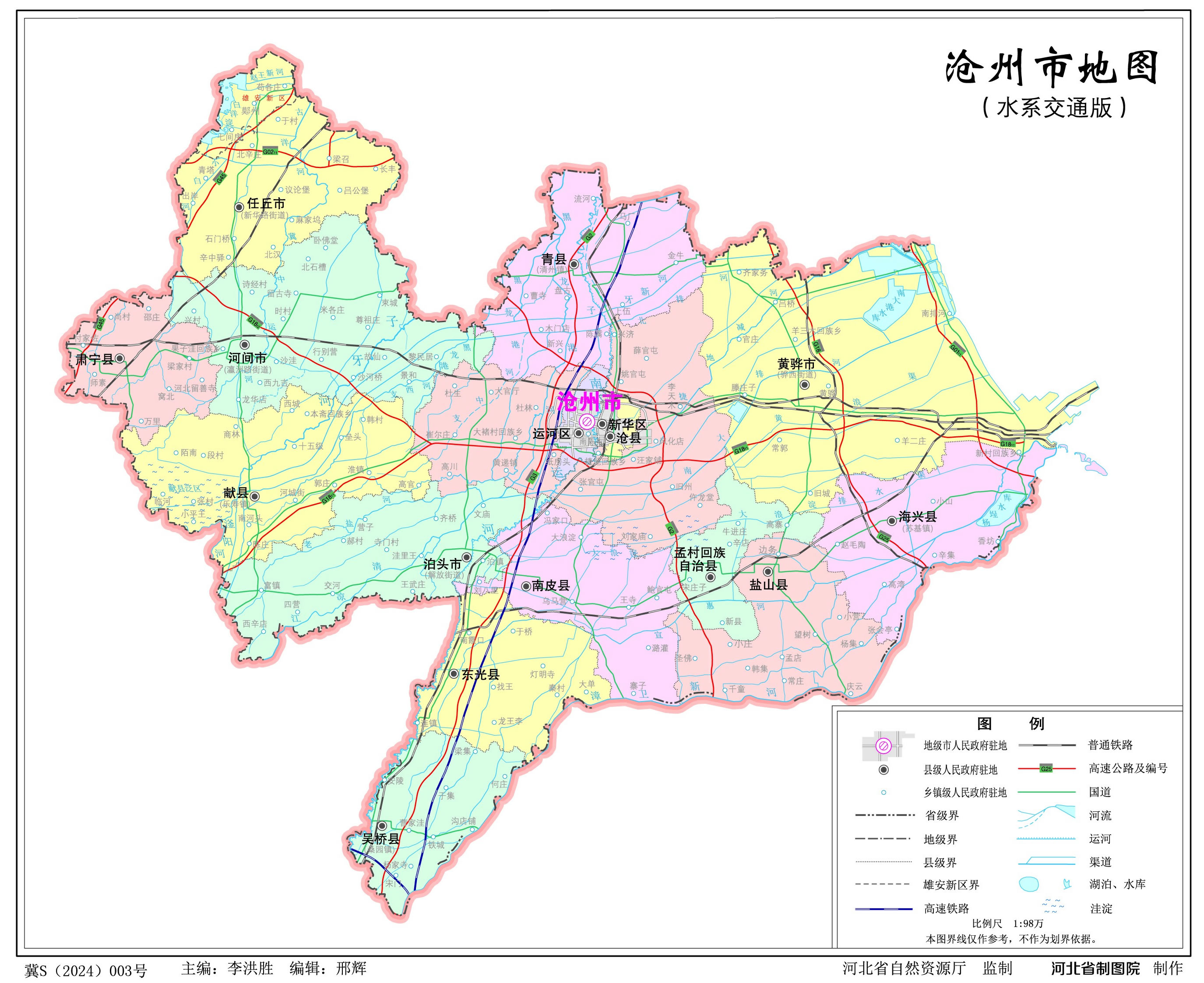 滄州市轄2個市轄區(qū)、9個縣、1個自治縣,代管4個縣級市: