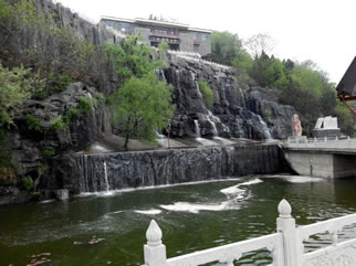 位于園內(nèi)英杰梁下,是南峪流域匯入漿水川的主要河道。原名南河溝,因抗大在此辦學(xué)期間,軍民同用一河水,故改名為軍民連心河。疊瀑從迎賓橋---廣場段,全長2000米,河寬15---30米,河中建有高0.8---1.5米攔河壩20道。