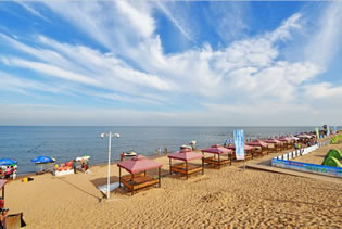 廣場(chǎng)緊靠沙灘浴場(chǎng),浴場(chǎng)具有沙細(xì)、灘緩、水清、潮平四大特點(diǎn),自然環(huán)境優(yōu)美,游客在這里可以體驗(yàn)海水浴、熱沙浴、也可以去進(jìn)行沙灘排球、沙灘足球、沙灘拔河、拓展訓(xùn)練等游樂活動(dòng)。到了晚上,在海螺廣場(chǎng)擇一位置,看海上的夕陽(yáng)如何消失,看海上明月共潮生。支幾頂帳篷,和三五好友談天說地、參加篝火晚會(huì),品嘗烤全羊等美味佳肴,最后和大海一起等待日出,感受太陽(yáng)的心跳。