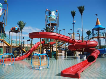 寶貝水城:小孩子的玩水樂園、歡樂的造夢(mèng)空間。典型設(shè)備包括蝴蝶滑梯、青龍滑梯、鱷魚滑梯等設(shè)備,還有蝸牛號(hào)、椰果派、水風(fēng)車、向陽(yáng)花、七彩蘑菇、彩虹門、三色花、鳥語(yǔ)花香、小妖精等可噴水可觀賞的童趣水景。寶貝水城色彩鮮艷,設(shè)施眾多,小孩們可以盡情嬉戲玩耍,激發(fā)兒童無(wú)窮的想象力和創(chuàng)造力。