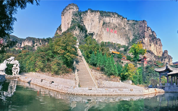 抱犢寨風(fēng)景名勝區(qū)是國家AAAA景區(qū),位于河北省石家莊市鹿泉市境內(nèi),距石家莊市16公里,距首都北京288公里。抱犢寨,舊名抱犢山,古名萆山,是一外集歷史人文和自然風(fēng)光為一體的名山古寨。它東臨華北平原,西接太行群巒,一峰突起,崢嶸雄秀,四周皆是懸崖絕壁,遠(yuǎn)望猶如巨佛仰臥,眉目畢肖。山頂平曠坦夷,有良田沃土660畝,土層深達(dá)66米,異境別開,草木繁茂,恍如世外桃源。有“天下奇寨”、“抱犢福地”、“全國最大山頂園林”等美譽(yù)。其景點均集中在寨頂平臺之上,有全國最大的山頂門坊南天門、道教宮觀金闕宮、全國最大的山頂?shù)叵率裎灏倭_漢堂、華夏第一龍壁千龍壁以及牛郎織女故事的發(fā)祥地——牛郎織女家、天池、天堂街、環(huán)山長城等諸多景點;公元前204年漢將韓信曾于此萆山設(shè)伏、背水一戰(zhàn)、大破趙軍,因而寨頂建有韓信點將臺和韓信祠。金末元初,金恒山公武仙曾于此山屯兵建寨,抗擊蒙古軍隊。在道教典籍中,該山被列為“北岳佐命”,明代著名道士張三豐也曾游歷此山,留下了“三豐派”一支脈,至今相傳不絕,宮觀猶存。近年來,景區(qū)大力實施升級改造工程,重修了登山路;開發(fā)建設(shè)了以音樂噴泉、讀月臺、天井飛瀑、彩虹谷、思凡亭等景點為主的鹿隱源生態(tài)新區(qū)。并增加了具有鮮明特色的少數(shù)民族歌舞演出,景區(qū)魅力倍增。