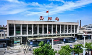安陽市境內(nèi)京廣鐵路、京港高鐵與晉豫魯鐵路形成“二縱一橫”鐵路樞紐。京廣鐵路、京港高鐵南北交通大動脈貫穿,橫貫安陽的東西動脈晉豫魯鐵路與京廣、京九、京滬鐵路接軌,北可達(dá)北京,南可至鄭州、廣州,西可達(dá)山西,東直達(dá)沿海日照港。安陽火車站始建于1905年,位于安陽市解放路西端,通往的城市有沈陽、重慶、包頭、漢口、太原、天津、武昌、攀枝花、長春、桂林、西安等?沙2、3、5、7、16、17、20、22、26、28、37路公交到達(dá)火車站。