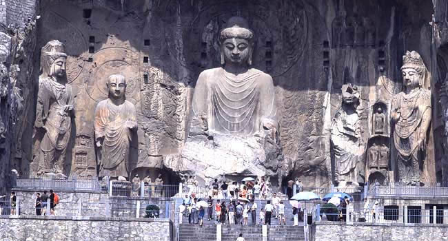 龍門石窟鑿于北魏孝文帝遷都洛陽前后(A.D.493年),嗣后歷經(jīng)西魏、東魏、北齊、隋、唐、五代的營造,從而在這里行船那嘎了南北長達一公里、具有兩千余座窟龕和十萬余尊造像的石窟遺存。這歷時500多年的營造過程中,包含北魏和盛唐兩個造像的高潮階段。至今,保存在伊闕兩山的這數(shù)以千計的像龕,絕大多數(shù)都是這兩個時代的文化遺產(chǎn)。