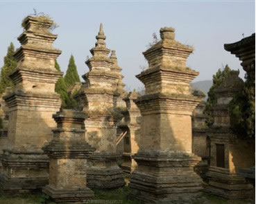 少林寺西約三百米處的少室山腳下,有一片中國最大的塔林。它南臨少溪,背依龍虎嶺,東接伏牛山脈,西依當(dāng)陽坡,林木蔥郁,環(huán)境秀美幽雅,這就是著名的少林塔林,它是少林歷代高僧、住持方丈的墓寢。