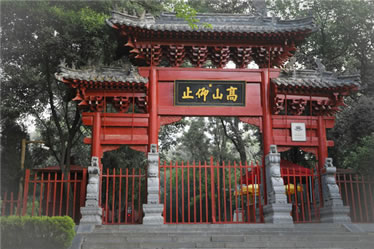 大門亦稱山門,由登封縣知縣葉封于清康熙十三年(1677年)主持重建。清乾隆四年(1739年),登封縣知縣施奕簪主持重修。1982年,文物部門維修時,復(fù)原了雙獅門墩、板門、隔墻上部的木隔扇。