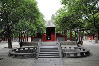 古代儒家倡導(dǎo)有道統(tǒng)就有治統(tǒng),因為“治統(tǒng)得道統(tǒng)而盛,道統(tǒng)賴治統(tǒng)而光!奔漓氲澜y(tǒng)三圣人,是嵩陽書院的傳統(tǒng),在中國古代書院中,唯有嵩陽書院保存此種祭祀形式。柱聯(lián)為清末政治家林則徐所作: “海納百川,有容乃大;壁立千仞,無欲則剛”。