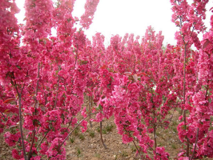 海棠園位于植物園西南角,占地28畝。海棠全世界共有35種,我國25種,該園收集薔薇科蘋果屬、木瓜屬的海棠品種27個(gè),14845株。有傳統(tǒng)品種:貼梗海棠、垂絲海棠、西府海棠、木瓜海棠、梨花海棠等,還有引自北美的花果俱佳的絢麗海棠、道格海棠、鉆石海棠、霍巴海棠、紅玉海棠、草莓果凍海棠、王族海棠、粉芽海棠、火焰海棠等。海棠一樹千花,唐朝《花譜》稱海棠為“花中神仙”。每年三、四月間,滿坡的海棠萬花齊放,層層疊疊、連綿不斷、紅白相溶、如曉天的明霞。海棠園內(nèi)地形起伏變化,新古洛渠貫穿其中,渠邊種植水生植物,野趣天成,在水流平緩處種植荷花、睡蓮;臨水處栽植垂柳,可謂是“柳占三春色,荷香四座風(fēng)”。