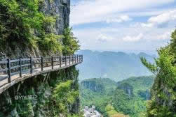 絕壁長廊,又叫“絕壁棧道”,始建于2007年10月,全長488米,118個(gè)臺(tái)階。位于海拔1700余米、凈高差300余米之絕壁山腰間。該工程既汲取了巴蜀古棧道營造法,又結(jié)合現(xiàn)代鋼筋砼施工之先進(jìn)工藝,科學(xué)安全,凝聚著當(dāng)代開發(fā)創(chuàng)業(yè)者的勇氣與智慧。沿棧道游覽,一路可以欣賞武陵風(fēng)光。該棧道共有七道彎八道拐,寓意是:路七彎八拐,心始終如一。歌曰:北斗七星有七斗(dǒu),絕壁棧道有七抖(dǒu);經(jīng)過一番驚嚇后,人生道路手拉手。