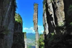 “一炷香”,高約150余米,最小直徑只有4米,此地的巖石的抗壓強(qiáng)度是800千克每立方厘米,它風(fēng)吹不倒,雨打不動(dòng),傲立群峰之中千萬年,守護(hù)著這片神秘的土地。相傳,這根石柱是天神送給當(dāng)?shù)匕傩盏囊桓y香,如遇災(zāi)難將他點(diǎn)燃,天神看到寥寥青煙,就會(huì)下凡來救苦救難,所以當(dāng)?shù)匕傩辗Q它為“難香”。從地質(zhì)學(xué)上講,由于長江水系、清江水系長期交錯(cuò)的影響,不斷地侵蝕,不斷地沖刷,形成如今陡峭的石柱,由于保存極度困難,所以地球上類似細(xì)長的石柱并不多見。