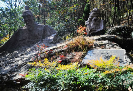 “撫琴石”,長(zhǎng)8米,寬5米,石頭左邊是一個(gè)人在彈琴,右邊是一個(gè)人在聽琴,這就是俞伯牙和鐘子期當(dāng)年“高山流水遇知音”的故事的再現(xiàn)。