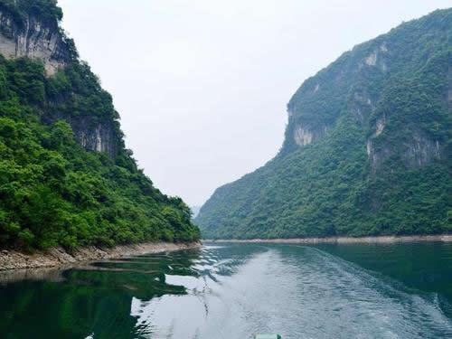從隔河巖碼頭上船,便開(kāi)始了浪漫的清江之旅。船從大壩右側(cè)駛?cè)胍坏缻{谷,這是清江畫廊第一景——倒影峽。峽長(zhǎng)5公里,水靜谷幽,山峰陡峭,處處皆畫。倒影峽水平如鏡,魚(yú)游枝頭鳥(niǎo)宿水的畫面,隨處可見(jiàn)。兩岸的巖石形成獨(dú)特的天然石林景觀,主峰有文峰倒影,駱駝飲水,孔雀開(kāi)屏。巫靈大佛等自然景觀。倒影峽因山得名,這座山叫作文峰山,陽(yáng)光燦爛的時(shí)候,它雄勁的身姿便倒映在清江之中,故此處稱為文峰倒影。隔河巖大壩蓄水后,便被稱為倒影峽了。