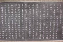 位于拜風臺右側(cè),東風閣后。于1985年動工籌建,碑廊建筑面積277平方米,1986年5月開放,為四合回廊式、鋼筋混凝土及木石結(jié)構(gòu)。門楣有李爾重題“赤壁碑廊”四字,廊內(nèi)鑲嵌有25塊石碑,石碑與墻面聯(lián)為一體。碑上更是有歷代詩人對于赤壁之戰(zhàn)進行描述的的詩、詞,由北京、上海、天津、廣州、武漢、揚州等地的王遐舉、沈鵬、任政、關(guān)山月、徐久達、吳丈蜀等全國著名書法家所書,赤壁碑廊后墻的正中還有一塊長4.7米,高1.5米的黑色大理石碑,碑文乃南宋民族英雄岳飛的手跡,內(nèi)容為諸葛亮的前后《出師表》。這些碑刻,行、草、篆、隸,各具千秋,精雕細鏤,均堪稱不世之佳作。
