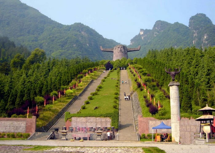 2002年通過國家質(zhì)量ISO9001和ISO 14000體系認證,被評為國家4A級景區(qū),建成于1997年,是神農(nóng)架一個自然和人文相結(jié)合的景區(qū)。景區(qū)有特色地分為四個部分:古老植物園、千年杉王、神農(nóng)祭壇、購物長廊。祭壇內(nèi)神農(nóng)塑像高大雄偉,莊嚴肅穆,雙目微閉,似乎在洞察世間萬物。它以大地為身軀,頭像高21米,象征中華民族在21世紀蒸蒸日上,寬35米,與它的高加起來共56米,象征著56個民族的大團結(jié)。祭壇外圍的五色石代表著五行,即金、木、水、火、土,內(nèi)方外圓,即有天圓地方之意。祭壇的兩側(cè)用八組壁畫記錄著遠古神農(nóng)氏的功德,即降牛以耕、焦尾五弦、積麻衣葛、陶石木具、原始農(nóng)耕、日中為市、穿井灌溉。八組壁畫以藝術(shù)的手法敘述了神農(nóng)氏的豐功偉業(yè),表達了子孫們的無限追戀。