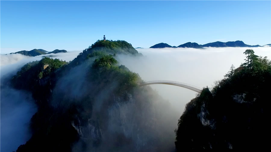 (2)流云佛光型:獨特的地形和濕潤的氣候造就了綺麗壯觀的云霧霞光,是神農(nóng)架特有的景致。更神奇的是,云海之上偶爾懸起一輪五彩光環(huán),環(huán)中似有人影晃動,那就是舉世罕見的“佛光”,中央新聞電影制片廠記者曾在天門埡、燕子埡一帶攝下這一自然奇景,使神農(nóng)架成為與峨眉山齊名的又一塊仙山佛地。