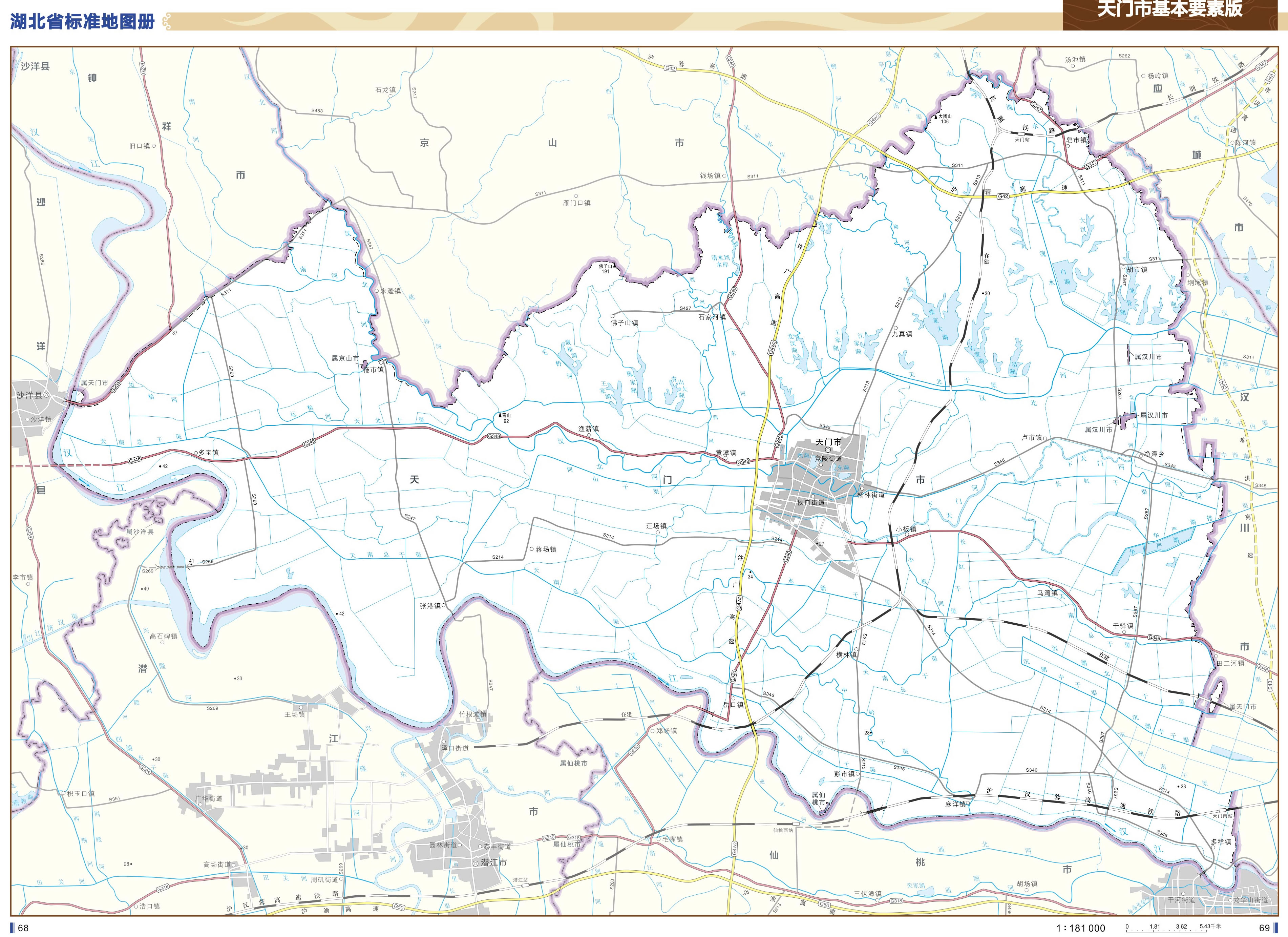 天門(mén)市轄3個(gè)街道、21個(gè)鎮(zhèn)、1個(gè)鄉(xiāng):