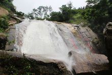 水簾洞位于南岳鄉(xiāng)水簾村,距南岳鎮(zhèn)4千米,古名朱陵洞,傳說與衡陽石鼓山上的朱陵洞相通。水簾洞水源來自南岳紫蓋峰頂,流經(jīng)山洞,匯入6米余寬,深不可測的石洞,水滿溢出,垂直下瀉,形成瀑布,高60余米。