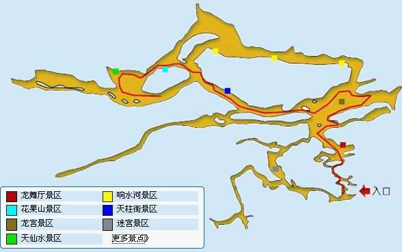 黃龍洞以立體的洞穴結(jié)構(gòu),龐大的洞穴空間,寬闊的廳堂及數(shù)以萬計(jì)的石筍,高大的洞穴瀑布,水陸兼?zhèn)涞挠斡[線等優(yōu)勢(shì)構(gòu)成了極具特色的游覽洞穴,洞內(nèi)有1庫(kù)、2河、3潭、4瀑、13大廳、98廊,以及幾十座山峰,上千個(gè)白玉池和近萬根石筍。由石灰質(zhì)溶液凝結(jié)而成的石鐘乳、石筍、石柱、石花、石幔、石枝、石管、石珍珠、石珊瑚等遍布其中,無所不奇,無奇不有,仿佛一座神奇的地下“魔宮”。黃龍洞現(xiàn)已開放有龍舞廳、響水河、天柱街、天仙瀑、龍宮等6大游覽區(qū),主要景觀有定海神針、萬年雪松、龍王寶座、火箭升空、花果山、天仙瀑布、海螺吹天、雙門迎賓、滄海桑田、黃土高坡等100多個(gè)。
