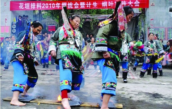 燕子山位于花垣縣排料鄉(xiāng)鏡內(nèi)。山上樹木參天,山北有500多米高的峭壁,七眼泉水從半壁吐出,瀉向深谷,每當(dāng)霧氣從谷底升起,人們就根據(jù)它的色彩判斷這一帶的天氣,白霧騰升——晴天,青霧飛出——陰天,黑霧翻滾——大雨即來。 |