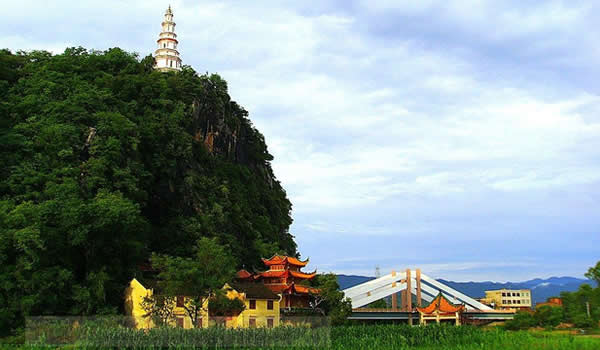 陽(yáng)華巖,位于縣城東五公里的竹園寨村回山腳下。巖口向東敞開,洞中怪石嶙峋,巖下有清泉從石縫流出,泉水晶瑩透澈。江華縣名就是因?yàn)樘瞥瘯r(shí)縣城在陽(yáng)華巖附近的河邊而得名。因風(fēng)景之勝,歷代文人墨客在巖壁留下詩(shī)文題刻四十多處。其中最有名的要數(shù)《陽(yáng)華巖銘(有序)》石刻。這是唐朝大文學(xué)家元結(jié)于公元766年任道州刺史時(shí)游陽(yáng)華巖所作,文中贊道:“吾游處山林幾三十年,所見泉石,如陽(yáng)華殊異而可家者,未也。”并稱:“九疑萬(wàn)峰,不如陽(yáng)華”。銘文由時(shí)任江華縣令的名書法家瞿令問用隸書、小篆、大篆三種字體書寫,刻之巖壁。因景絕、詩(shī)絕、字絕,一千二百多年來(lái)傳為名跡,F(xiàn)為江華縣唯一的省級(jí)文物保護(hù)單位。