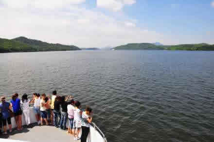 天目湖旅游度假區(qū),位于蘇、浙、皖三省交界處的江南歷史名城,溧陽市境內(nèi),距市區(qū)僅八公里。天目湖東臨煙波浩渺的太湖,北望工業(yè)發(fā)達的常州,西接六朝古都南京,南連蜿蜒起伏的天目山脈。天目湖旅游度假區(qū)開發(fā)建設(shè)于一九九二年四月,整個度假區(qū)的范圍為三百平方公里,其中包括沙河和大溪兩座國家級大型水庫。這兩大水庫地處天目山的余脈,從空中鳥瞰恰似兩顆明珠鑲嵌于溧陽大地。天目湖湖水來源于蘇、浙、皖三省交界的南山地區(qū),二百五十平方公里的河澗水匯集成湖,總庫容量為三億立方米,總長度為十三公里,水庫最深處為二十八米,平均深度為十米左右。湖區(qū)陸地部分為安山巖和石灰?guī)r,地形較為低緩。湖區(qū)群山環(huán)抱,湖水清冽。湖岸蜿蜒曲折,湖內(nèi)布滿大小島嶼。區(qū)內(nèi)奇花異草,色彩繽紛,野生動物,棲息繁衍,形成完整與和諧的生態(tài)系統(tǒng)。
