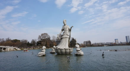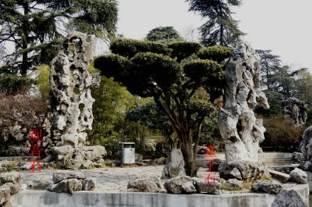 童子拜觀音石為珍貴的太湖奇石,系北宋花石綱遺物,因其形態(tài)極似而得名,位于假山前。石高6.3米,寬0.9米,具有太湖石“瘦、透、漏、皺”的典型特征,是太湖石中的精品。假山之巔,引瀑布飛流直下,瀉入鑿地而圍的水池。是進入玄武湖后名副其實的第一景點。