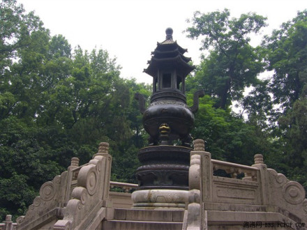 祭堂前面東西兩側(cè),矗立一對高大的華表,是用福建花崗石雕琢而成的。華表高12.6米,下部直徑2米,上部直徑1米。華表的斷面為六角形,六面均飾浮雕卷云紋。遠遠望去,華表仿佛直插青天,富有很強的立體感。大石階邊的兩側(cè)石座上,各置紫銅帶蓋的銅鼎一尊。華表與銅鼎,把祭堂襯托得更加宏偉壯麗,又增添了肅穆和寄托哀思的氣氛。