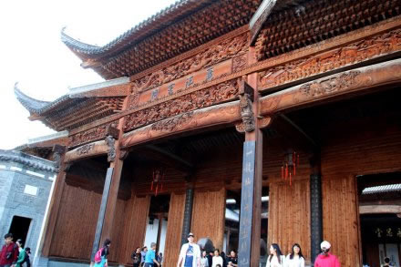 蕭江宗祠 又名永思祠,座落在婺源縣江灣鎮(zhèn)占坑村,距婺源縣城32公里,江灣約2公里。始建于明朝萬歷六年(1587年),后毀于太平天國戰(zhàn)火。1924年(民國十三年)重建,文化大革命期間又被拆毀。蕭江宗祠曾被譽為江南七十座著名宗祠中“最好的一座宗祠”為婺源古代四大古建之首。2003年9月,第三次重建。該祠盡顯王室氣派,占地面積達2400平方米,分前院、前堂、中堂、后堂四進。前院為寬敞花園,設有青石護欄半月形蓮花池,內養(yǎng)紅鯉魚、草魚、軍魚等多種魚類;前堂為五鳳樓、九脊頂、午朝門、月樓,梁材檐椽巧飾雕琢、畫面生動、形態(tài)逼真;中堂粗梁大柱,鼓式石礎,石階、石欄、月臺各具特色,匾額楹聯(lián)措詞秀麗、授意深長;后堂高于前堂,有樓閣安放靈牌。