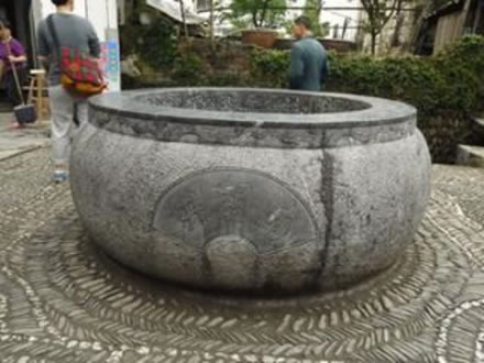 北斗七星井位于江西省上饒市婺源縣江灣鎮(zhèn)江灣景區(qū)內,北斗七星井體現(xiàn)了”天、地、人合一”的中國風水學最高原則,南側梨園河呈太極圖“S”形系。北宋初年,南唐國師何令通遭貶來到江灣靈山隱居,與蕭江六世祖江文采交往甚篤,便指引蕭江氏族人由旃坑遷居風水寶地云灣(現(xiàn)為江灣)。蕭江先祖在他的指引下,利用風水學的最高原理,對江灣的水系環(huán)境、建筑布局、街衢走向,山脈走勢等方面進行了改造。族人自遷云灣后人丁日益興旺、科第舉發(fā),其中村內的北斗七星井便是國師運用風水學的典范。 中國古代的四個方位分別是“前朱雀后玄武、左青龍右白虎”,而江灣的地勢是玄武(后龍山)偏低,朱雀(對面攸山)偏高,朱雀屬火,也就是說南方火勢較旺,是一個較為不利的地形。當時何令通便想出在村中挖七口井,并按北斗七星狀分布,以七井之水鎮(zhèn)住攸山火勢。而北斗七星分布又是呈勺子狀的,從此,村內即有了充足水源又有了舀水的勺子,攸山之火自然就被鎮(zhèn)住了。