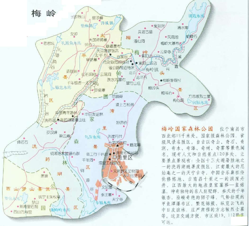 梅嶺風(fēng)景名勝區(qū)位于南昌市西郊15公里處,在江南最大的“飛來峰”上,因西漢梅福于此修道而得名。又因位于城區(qū)之西,復(fù)又名西山。梅嶺西臨鄱陽湖,北與廬山對(duì)峙,方圓150平方公里,是著名的避暑勝地,也是中國古典音律和道教凈明宗的發(fā)源地。