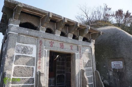 紫陽宮為當(dāng)?shù)厝思o(jì)念鄧禹修建的道觀。全部采用花崗巖砌成,石屋巍峨,建筑華麗。門前橫梁正中刻著“紫陽宮”三字,宮內(nèi)供奉鄧禹石像。兩側(cè)石柱之上刻有對(duì)聯(lián)一副:“一竅道通沖北極,萬年仙境鎮(zhèn)西山”。石室下方有鄧仙洞、鄧真君墓、起居石室。