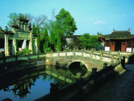 妙濟(jì)橋位于梅嶺景區(qū)內(nèi),呈灰白色,為單孔石拱橋,橋欄有十二根石柱,每個(gè)石柱頂?shù)窨讨恢华{子,形態(tài)各異,栩栩如生。此橋曾為木橋,清朝嘉慶丁丑年改建為石橋,橋碑上刻著“嘉慶丁丑”、“秋月吉旦”等字樣。