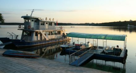 凈月潭水上游覽船舶集水上交通運輸、游覽于一體。從任何一處碼頭上船都可以通向風景區(qū)的幾個主要景點:大壩碼頭、沙灘浴場碼頭、橡樹灣碼頭(森林浴場)、滑雪場。凈月潭現(xiàn)有兩艘主要船舶。其中“乘風號”游船系雙層雙體燃氣環(huán)保型游覽船舶,定員 100位。游客可在乘坐游船的同時觀賞凈月潭水的秀色。而“麒龍?zhí)枴笔且凰椰F(xiàn)代船舶,客艙內(nèi)配有電視、音樂,為游客播放凈月潭相關(guān)視頻,二層甲板處更是觀光遠眺凈月風景的好地方。凈月潭又從日本購進多輛三座位的“水上摩托艇”,速度快、較刺激,可供游客自行駕駛。由“摩托艇”牽引,游人還可踩滑水板滑翔于潭面。由“快艇”牽引,乘坐五座位的火箭沖浪艇,也極具刺激性。