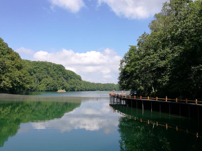 輝南縣境內(nèi)共有7個火山湖。據(jù)科學考察,是20萬年前火山噴發(fā)后地下水上升聚集而成的。