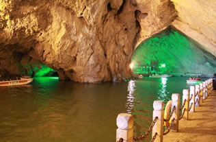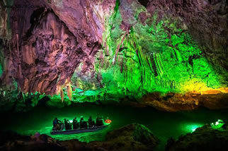它們維妙維肖,形象逼真。特別是玉米塔、玉象和雪山三景,更是名實(shí)相符,幾可亂真。銀河兩岸鐘乳林立,石筍如畫,千姿百態(tài),光怪陸離,洞頂空窿鐘乳高懸,晶瑩斑斕,神趣盎然,沿河景點(diǎn)達(dá)100余處,千姿百態(tài),各具特色,泛舟其中,如臨仙境,這是水與石渾然天成的神秘洞穴,是迄今世界上已發(fā)現(xiàn)的最長(zhǎng)可乘船游覽的地下暗河。
