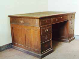 北野政次使用過的辦公桌、椅子、書架:北野政次曾用名北野政藏,日本人。日本東京帝國大學(xué)畢業(yè),獲醫(yī)學(xué)博士。這一套桌、椅及書架是當(dāng)時(shí)北野政次在“滿洲醫(yī)科大學(xué)”時(shí)使用的“辦公用品”,是由中國醫(yī)科大學(xué)于1997年捐贈(zèng)給該館的。