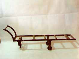 運(yùn)尸車:該運(yùn)尸車長約200厘米,高約120厘米,鐵制,有3只車輪。這種運(yùn)尸車,是日本侵略者用來運(yùn)送被他們殘酷的盤剝壓榨,苦力折磨和殘暴的肉體刑罰而悲慘死去的無數(shù)中國人尸體的工具。