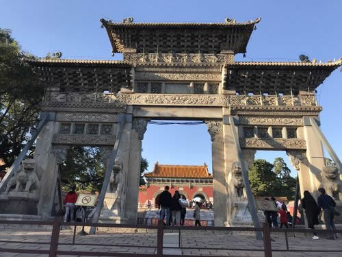 過了石橋不遠處就是石牌坊,位于通往正紅門的中間路段,其上雕刻生動形象,是清代雕刻的珍品。過了石牌坊,就是正紅門了,是陵寢的大門,兩側院落東為更衣亭西為宰牲亭。