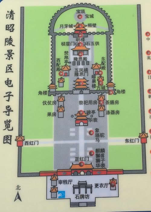 清昭陵,是在平地上建立的,主要建筑位于中軸線上,其它建筑對稱分布于中軸線兩側。昭陵由三部分組成。