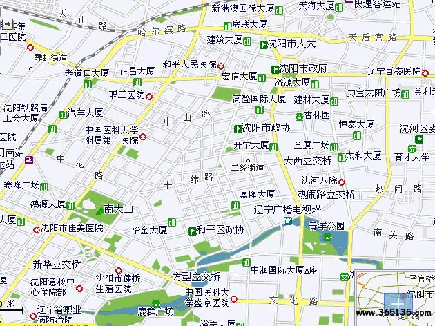 和平區(qū)位于沈陽市的中心區(qū)域,東以青年大街、三經(jīng)街與沈河區(qū)交界;西以沈大線鐵路與鐵西區(qū)交界;北以沈山線鐵路與皇姑區(qū)交界;南跨渾河與東陵區(qū)渾河站鄉(xiāng)相連.高樓林立的文化路、中華路橫穿全區(qū);綠樹成蔭的和平大街、勝利大街縱貫南北;一座座立交橋如蝴蝶展翅,通過大二環(huán)與周圍高速公路構成四通八達的交通網(wǎng)。