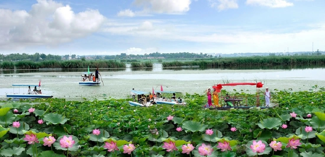 - 萬(wàn)畝荷塘(夏季):荷花盛開(kāi),清香撲鼻,可乘船游覽。
