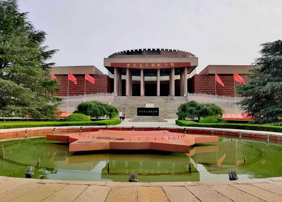 棗臺兒莊大戰(zhàn)紀念館,位于山東省棗莊市臺兒莊區(qū)城區(qū)西南郊,是為了紀念抗日戰(zhàn)爭初期著名的臺兒莊戰(zhàn)役而修建,于1992年由臺兒莊區(qū)人民政府籌資建成,1993年4月8日正式對外開放,后經(jīng)擴建,占地面積達96畝,建筑面積1.2萬平方米。臺兒莊大戰(zhàn)紀念館由紀念碑、陳列館、影視館、全景畫館、戰(zhàn)地記者館、無名英雄墓、國防教育園等部分組成,并設(shè)有臨時展廳、多功能報告廳和紅色圖書室。展出文物、圖片和史料2000余件,通過歷史文物、歷史圖片、文獻資料與各類輔助陳列手段的有機結(jié)合,全景再現(xiàn)臺兒莊大戰(zhàn)中愛國將士報效祖國的壯舉。