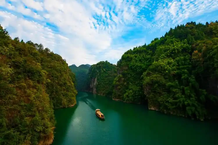 - S形河道:全程27道彎、28個(gè)“一線天”門,詩(shī)人形容“船到崖前疑無(wú)路,調(diào)轉(zhuǎn)船頭又一彎”。
