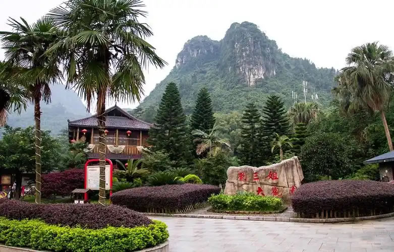 劉三姐大觀園原名桂林劉三姐景觀園,坐落在廣西壯族自治區(qū)桂林市桃花江畔,占地一百多畝,總投資伍仟余萬元人民幣。劉三姐大觀園是桂林市旅游業(yè)的一顆新星,她以劉三姐文化精華為主題,集觀賞、娛樂為一體的休閑游樂場所。經(jīng)桂林市、廣西旅游景區(qū)質(zhì)量等級評定委員會初評和推薦,由全國旅游景區(qū)質(zhì)量等級評定委員會評定,桂林經(jīng)典劉三姐大觀園于2012年8月10日被國家旅游局批準(zhǔn)為國家4A級旅游景區(qū)、廣西首批民旅風(fēng)情旅游示范點(diǎn)。
