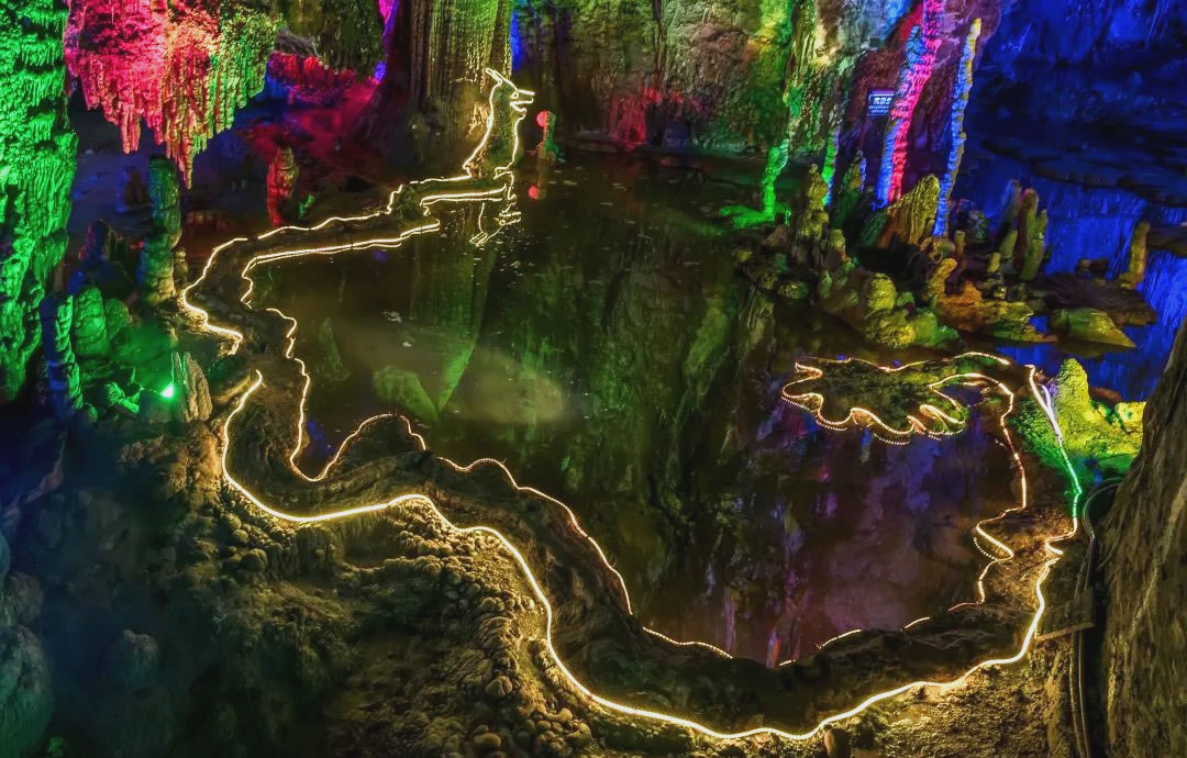 - 龍母后宮:鐘乳石密度達每立方米5根,燈光映射下呈現(xiàn)翡翠色光澤