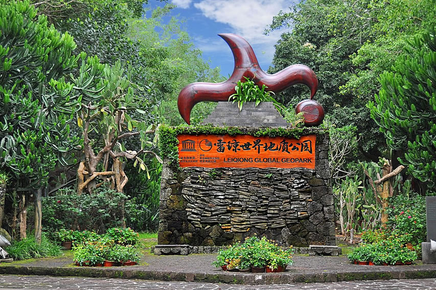 中國(guó)雷瓊世界地質(zhì)公園位于中國(guó)南端,地處廣東省湛江市雷州半島(雷)和海南省?谑校ō偅烧拷瓐@區(qū)、海口園區(qū)與瓊州海峽組成,面積為3050平方千米。公園地區(qū)多期次的火山噴發(fā)形成的獨(dú)特的地理、地質(zhì)環(huán)境,造就了公園廣闊的玄武巖臺(tái)地、豐富的火山地貌以及火山巖海蝕地貌與海積地貌等地質(zhì)遺跡景觀,也造就了當(dāng)?shù)鬲?dú)特的火山文化。公園以?隈R鞍嶺等為代表的第四紀(jì)火山帶聞名于世,更有以湖光巖為代表的瑪珥湖堪稱研究全球古氣候、古環(huán)境變化的“天然年鑒”。