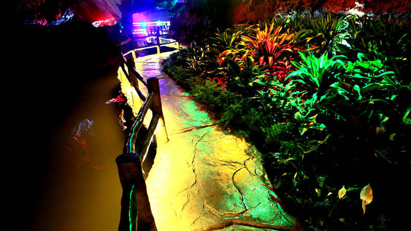 進(jìn)口→龍骨洞→天國睡佛→時(shí)空隧道→別有洞天→滄海日出→水漫金山→千載難逢→金雕獨(dú)尊→出口。